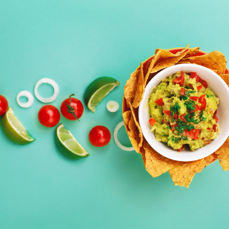 A twist on the traditional guacamole with the addition of bacon and sour cream. Even more of a twist? You roast the avocados in the oven next to the bacon! If you use imitation bacon, read the ingredients to make sure it doesn’t contain gluten as some imitation meats do.
