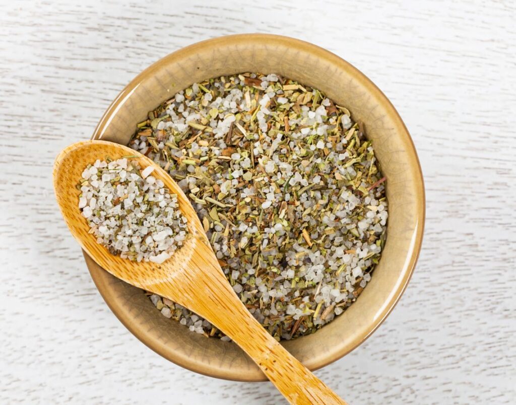 Heighten the flavor and aroma of roasted vegetables, especially potatoes, with herb salt. Simply toss with olive oil, sprinkle with herb salt, and roast in the oven at 450 degrees for 20 minutes or until tender.