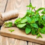 MINT: This very aromatic herb is commonly used in Greek cuisine, often paired alongside lamb. Mint also tastes great when combined with citrus fruit or cucumber in cooling summer beverages. Plus, it can help soothe digestion and may ease stomach cramps.