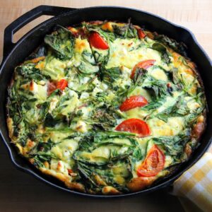 Sautee an assortment of veggies like bell peppers, spinach, and tomatoes in a skillet. Pour beaten eggs over the vegetables and cook until set. Slice the frittata into wedges for a savory, nutrient-rich breakfast.