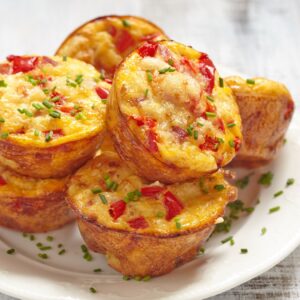 Whip up a batch of omelet muffins loaded with diced vegetables, cooked bacon or sausage, and a sprinkle of cheese. Bake them in advance and grab a couple as you rush out the door for a protein-packed breakfast that fits right in your hand.